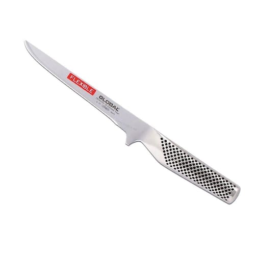 Faca Para Desossar Em Aço Inox 16cm Global Com formato de lâmina desenhado exclusivamente para desossar carnes, esta faca é indispensável na cozinha. Desenvolvida em aço extremamente resistente, possui peso ideal distribuído por toda peça que garante conforto e segurança durante o manuseio. Ainda conta com lâmina forjada e afiada à mão com qualidade incrivelmente superior comparada às facas concorrentes. Baseada em conceitos milenares de forjamento de lâminas e inspirada nas poderosas espadas dos samurais, a Japonesa Global Knives detêm conhecimentos suficientes que a destaca como a melhor produtora de lâminas para fins culinários do mundo, atendendo os padrões mais exigentes e recebendo uma série de prêmios, como o da renomada revista americana Restaurant Magazine. Pela 6 vez consecutiva, vitoriosa na categoria de faca Choice Awards em 2015.Ficha técnica:- Código: 4082060005- Marca: Global- Conteúdo da Embalagem: 1 Faca- Material: Aço inox- Peso: 240g- Dimensões: 2,2cm x 8,8cm x 37,5cm (AxLxP)- Garantia: 3 Meses - Contra defeito de fabricação Sobre a Marca - Apesar de fundada apenas em 1985, a Global Knives se baseia no conhecimento japonês milenar de forjamento de lâminas. Há mais de mil anos o Japão já era conhecido por possuir ferreiros e forjas que produziam os metais cortantes mais fortes e afiados do planeta, fama esta que acompanhou a linhagem dos tradicionais guerreiros samurais. Quanto mais respeitado o samurai, melhor era sua espada. Até hoje a Global Knives detém conhecimentos que os colocam como os melhores produtores de lâminas para fins culinários no mundo. Garantia - 3 Meses - Contra defeito de fabricação Mais Informações - Medidas aproximadas do Gift Box: Altura: 2,2cm Largura: 8,8cm Comprimento: 37,5cm Peso: 240g Marca: GLOBAL ALUMÍNIOS