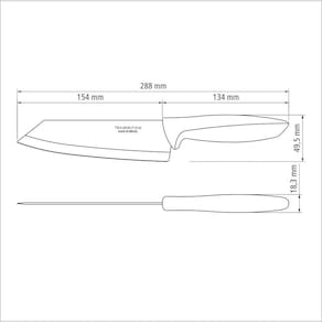 A Faca para Fatiar e Picar Tramontina Plenus com Lâmina em Aço Inox e Cabo de Polipropileno Preto 6 Polegadas da linha Plenus atende à diferentes exigências na cozinha. Ideal para fatiar e picar, ela pode estar presente em diferentes preparações que podem ir desde o café da manhã ao jantar. A lâmina de 6 polegadas em aço inox e o cabo de polipropileno na cor preta garantem resistência e conforto no uso. Fácil de lavar, pode ser usada na máquina de lavar louças. Orientações Ideal para cortar, fatiar e picar.A lâmina de aço inox têm maior durabilidade do fio devido ao tratamento térmico. O cabo de polipropileno possui maior resistência e durabilidade. Pode ir à máquina de lavar louças facilitando seu dia a dia. Observações Antes da primeira utilização, lave bem a peça e seque-a. Produto cortante e perfurante: tenha cuidado ao manusear e mantenha fora do alcance das crianças. Para maior durabilidade do produto recomenda-se secar bem antes de guardar, mesmo após lavagem em máquina. Recomenda-se o uso de tábuas de polipropileno ou madeira da Tramontina para maior durabilidade do fio da faca. Não é indicado o uso da faca para o corte de alimentos congelados. Mantenha sempre sua faca afiada utilizando os afiadores da Tramontina.Para descarte dos produtos e embalagens siga as orientações de reciclagem vigentes. Características Gerais EAN13 7891112236929 DUN14 17891112236926 NCM 8211.92.10 Peso Líquido 0,1110 kg. Peso Bruto 0,1360 kg. Metragem 0,000587 m³. Dimensões Embalagem (Compr. X Larg. X Alt.) 20x 77x 381 mm. Dimensões Produto (Compr. X Larg. X Alt.) 288x 50x 18 mm. Cor 1 000000 Hexa