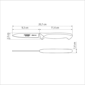 Antes da primeira utilização, lave bem a peça e seque-a. Produto cortante e perfurante: tenha cuidado ao manusear e mantenha fora do alcance das crianças. Para maior durabilidade do produto recomenda-se secar bem antes de guardar, mesmo após lavagem em máquina. Recomenda-se o uso de tábuas de polipropileno ou madeira da Tramontina para maior durabilidade do fio da faca. Não é indicado o uso da faca para o corte de alimentos congelados. Mantenha sempre sua faca afiada utilizando os afiadores da Tramontina. Para descarte dos produtos e embalagens siga as orientações de reciclagem vigentes.