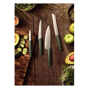 Inspirada em elementos naturais, como o vento e a folha, a faca para pão Tramontina LYF com lâmina em aço inox e cabo de polipropileno PCR verde natureza 7 polegadas tem formas fluidas e é a escolha ideal para quem deseja deixar sua cozinha completa. Com lâmina em aço inox e cabo em polipropileno PCR, ela é uma faca que corta sem amassar, pois tem fio serrilhado. Resistente e durável, ela ainda pode ser levada à máquina de lavar louças, otimizando suas tarefas na cozinha. A faca para pão Tramontina LYF é produzida com materiais reciclados e recicláveis e é a escolha mais sustentável para sua cozinha!