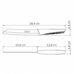 Modo de Uso: Para maior durabilidade do produto recomenda-se secar bem antes de guardar, mesmo após lavagem em máquina. Recomenda-se o uso de tábuas de polipropileno ou madeira da Tramontina para maior durabilidade do fio da faca. Não é indicado o uso da faca para o corte de alimentos congelados. Para descarte dos produtos e embalagem siga as orientações de reciclagem vigentes.