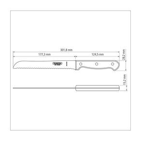 A lâmina serrilhada corta sem amassar. A lâmina de aço inox têm maior durabilidade do fio devido ao tratamento térmico. O cabo de madeira tratada Polywood é resistentes à impactos e alta temperaturas garantindo maior resistência e durabilidade. Rebites de alumínio. Pode ir à máquina de lavar louças facilitando seu dia a dia.