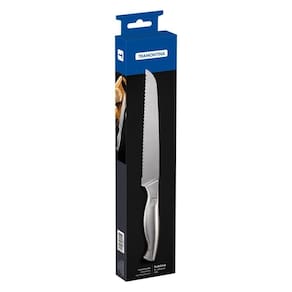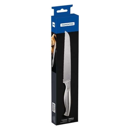 Faca Para Pão Tramontina Sublime Em Aço Inox 8 Polegada Faca para Pão Tramontina Sublime em Aço Inox 8 Nada como começar o dia com aquele pão quentinho com manteiga, não é mesmo?! E para cortá-lo, sem amassar e sem danificá-lo, a faca para pão Tramontina Sublime em aço inox 8 polegadas é indispensável. Produzida totalmente em aço inox com lâmina serrilhada, ela é uma faca diferenciada, com um design moderno e de linhas exclusivas, que deixa sua cozinha muito mais bonita e garante maior praticidade para seu dia a dia!