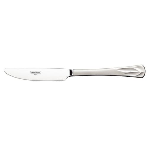 Faca totalmente temperada, que garante maior durabilidade no fio de corte e maior resistência à corrosão, e por sua característica de temperabilidade, não risca as porcelanas. Totalmente feita de aço inox, mantém suas características originais, preservando a beleza, a higiene e a durabilidade do material. Acabamento brilho e fosco. Própria para uso diário combina com qualquer ambiente. Pode ser lavada diariamente na máquina de lavar louças. Orientações Material: aço inox. Observações Use apenas sabão ou detergente e uma esponja macia. Outros tipos de produtos, como palha de aço, poderão riscar ou prejudicar o brilho dos talheres. Enxágue bem cada peça a fim de remover totalmente os resíduos dos produtos de limpeza, que, por serem abrasivos, podem atacar o inox. Sempre que possível, use água quente, pois renova o brilho do talher. Após a lavagem, enxugue imediatamente os talheres, caso contrário, as substâncias químicas da água (cloro) poderão causar manchas. Evite atrito entre os talheres durante o processo de lavagem e no armazenamento, para mantê-los sem riscos. Evite o contato das peças com superfícies quentes. Elas provocam a descoloração do produto. Não guarde os talheres em locais úmidos. A umidade também provoca manchas.Qualquer faca, independentemente de marca, para manter o fio de corte, é fabricada em aço com maior teor de carbono e, por isso, é menos resistente à corrosão. Assim, pedimos uma atenção especial para este artigo, pois estará mais propenso aos problemas citados. Usando máquina de lavar louças Não carregue em demasia a cesta dos talheres. Separe bem as peças, pois o contato permanente entre as mesmas, durante a secagem, poderá causar manchas. Retire os talheres logo que tenha terminado o ciclo"enxaguar", a fim de que os mesmos sejam secados manualmente. Características Gerais EAN13 7891116074251 DUN14 17891116074258 NCM 8211.91.00 Peso Líquido 0,0750 kg. Peso Bruto 0,0750 kg. Metragem 0,000042 m³. Dimensões Embalagem (Compr. X Larg. X Alt.) 222x 19x 10 mm. Dimensões Produto (Compr. X Larg. X Alt.) 222x 19x 10 mm. Espessura 8,0 mm.