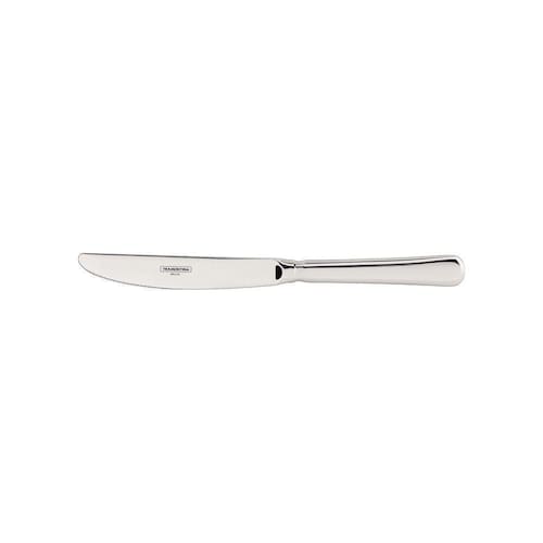 Faca totalmente temperada, que garante maior durabilidade no fio de corte e maior resistência à corrosão, e por sua característica de temperabilidade, não risca as porcelanas. Totalmente feita de aço inox, mantém suas características , preservando a beleza, a higiene e a durabilidade do material. Acabamento brilho e fosco. Própria para diário combina com qualquer ambiente. Pode ser lavada diariamente na máquina de lavar louças.