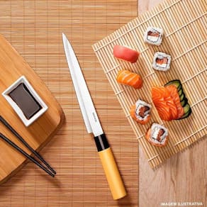 Você que é amante da cozinha oriental precisa conhecer a faca para sushi e sashimi da Brinox. Você terá muito mais precisão com a lâmina em aço inox de alta performance e o cabo de nylon com proteção antimicrobiana. Com 8 polegadas, ela garante segurança e equilíbrio na hora de realizar o corte perfeito para um prato japonês de primeira qualidade.