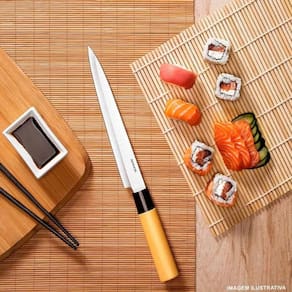 Você que é amante da cozinha oriental precisa conhecer a faca para sushi e sashimi da Brinox. Você terá muito mais precisão com a lâmina em aço inox de alta performance e o cabo de nylon com proteção antimicrobiana. Com 8 polegadas, ela garante segurança e equilíbrio na hora de realizar o corte perfeito para um prato japonês de primeira qualidade.