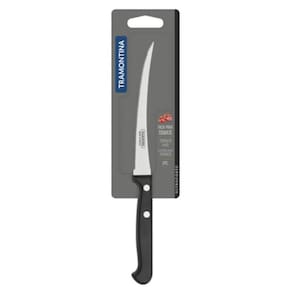 Faca Para Tomate Tramontina Ultracorte 5 Inox Preta A Faca para Tomate Tramontina Ultracorte com Lâmina em Aço Inox e Cabo de Polipropileno Preto 5 Polegadas torna o dia a dia mais prático e saboroso. Criada para facilitar o corte do tomate, ela possui lâmina de aço inox microsserrilhada que rompe a pele do tomate sem amassar. É uma peça durável e muito resistente. O cabo de polipropileno na cor preta torna o uso mais confortável. Recomendações de Uso: - Antes da primeira utilização, lave bem a peça e seque-a.- Produto cortante e perfurante: tenha cuidado ao manusear e mantenha fora do alcance das crianças.- Para maior durabilidade do produto recomenda-se secar bem antes de guardar, mesmo após lavagem em máquina.- Recomenda-se o uso de tábuas de polipropileno ou madeira da Tramontina para maior durabilidade do fio da faca.- Não é indicado o uso da faca para o corte de alimentos congelados.- Para descarte dos produtos e embalagens siga as orientações de reciclagem vigentes. Informações Adicionais: