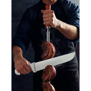 - Lâmina em aço inox especial DIN Lâmina tratada termicamente pelos processos de têmpera, sub- e revenimento, garantindo níveis de dureza média de 56 HRC, proporcionando maior desempenho no corte, fio mais preciso e durável.- Desbaste perfeito em forma de v assegura um corte preciso e um excelente rendimento, mesmo depois de muitas afiações.- Cabo de Polipropileno com proteção antimicrobiana que inibe o crescimento de bactérias e fungos.- a Tecnologia antimicrobiana é incorporada ao Cabo da Faca Durante o processo de fabricação e dura por toda a vida útil do produto.- Cabo anatômico, com textura especial, maior conforto e no manuseio, mais higiênico.- Cabo monobloco injetado diretamente sobre a espiga da Lâmina garante perfeita fixação.- Ausência total de fendas na união cabo/lâmina, evitando folgas ou frestas entre as partes e retenção de resíduos.- Desenvolvida especialmente para passadores de churrascarias.- O cabo possui um design diferenciado. A guarnição traseira é apropriada para o passador levar o espeto e a faca na mesma mão, deixando-a entre os dedos.- Pode ir à máquina de lavar louças.- Certificado pela National Sanitation Foundation (NSF), organização reconhecida como a autoridade internacional em alimentar e práticas de higiene.