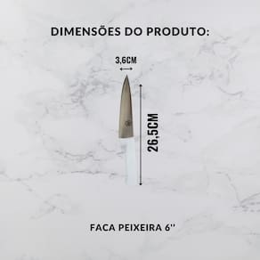 Esta faca possui uma lâmina de 6 polegadas feita de aço inox, um material conhecido por sua durabilidade e resistência, Com um design moderno e exclusivo, a Faca Peixeira se destaca na sua cozinha. O acabamento em alto brilho adiciona um toque de elegância à faca, o cabo possui um design ergonômico revestido em polipropileno, proporcionando conforto e segurança durante o manuseio.