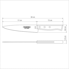 Que tal contar com uma peça perfeita no preparo de suas refeições com peixe? A Faca Peixeira e Cozinha Tramontina Tradicional com Lâmina em Aço Inox e Cabo em Madeira Natural 7 polegadas é a peça ideal para essas atividades. Com cabo de madeira natural com acabamento polido, a peça terá um toque rústico. Além disso, a lâmina de aço inox conta com uma espessura que oferece maior resistência. Eficiência e praticidade é com a Tramontina! Orientações Tradicionalmente chamada de peixeira, se difundiu na cozinha para usos diversos.A lâmina de aço inox tem maior durabilidade do fio devido ao tratamento térmico. O cabo é de madeira natural. Rebites de alumínio. Observações Antes da primeira utilização, lave bem a peça e seque-a. Produto cortante e perfurante: tenha cuidado ao manusear e mantenha fora do alcance das crianças. Para maior durabilidade do produto recomenda-se secar bem antes de guardar. Recomenda-se o uso de tábuas de polipropileno ou madeira da Tramontina para maior durabilidade do fio da faca. Não é indicado o uso da faca para o corte de alimentos congelados. Mantenha sempre sua faca afiada utilizando os afiadores da Tramontina.Para descarte dos produtos e embalagens siga as orientações de reciclagem vigentes. Características Gerais EAN13 7891112002593 DUN14 17891112002590 NCM 8211.92.10 Peso Líquido 0,0860 kg. Peso Bruto 0,1050 kg. Metragem 0,000382 m³. Dimensões Embalagem (Compr. X Larg. X Alt.) 15x 67x 380 mm. Dimensões Produto (Compr. X Larg. X Alt.) 300x 38x 15 mm.