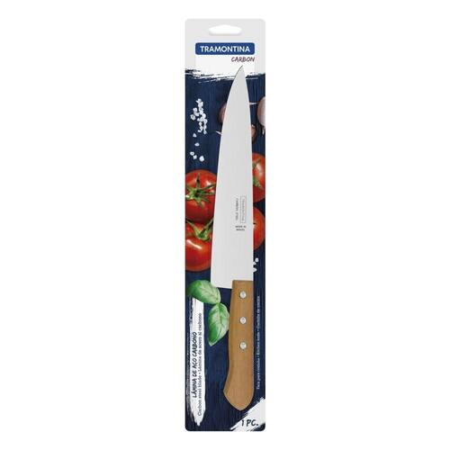 Faca Peixeira Tramontina Com Lamina Em Aço Carbono Com Cabo De Madeira 9" Faca Peixeira Tramontina com Lâmina em Aço Carbono com Cabo de Madeira 9 Descubra todo o seu potencial culinário através da Faca Peixeira Tramontina com Lâmina em Aço Carbono com Cabo de Madeira 9 polegadas. Produto indispensável para tornar sua rotina na cozinha muito mais prazerosa e prática, pois tem lâmina produzida em aço carbono com verniz protetor, e devido ao tratamento térmico que lhe é aplicado, tem um fio excelente, proporcionando o corte perfeito dos alimentos. A faca ainda conta com cabo em madeira rústica com rebites de alumínio, o que oferece mais conforto no manuseio e ainda leva muito mais beleza e estilo para sua cozinha, devido ao seu toque rústico!