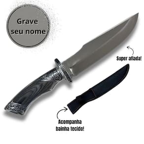 Faca Personalizada Para Caça E Churrasco Com Bainha Cinza Descrição: Faca Personalizada para Churrasco e Caça - Aço Inox com Bainha