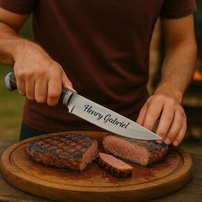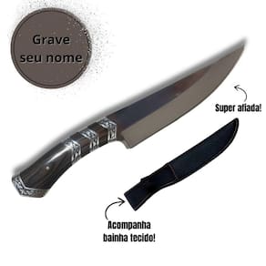 Faca Personalizada Para Caça Pesca E Churrasco Com Bainha Descrição: Faca Personalizada para Churrasco e Caça - Aço Inox com Bainha Estilo, robustez e funcionalidade em uma só peça. Ideal para quem leva o churrasco ou a caça a sério, esta faca une qualidade premium, design marcante e a exclusividade da personalização a laser. - Detalhes do Produto: .Lâmina em aço inox de alta resistência e corte preciso .Super afiada: desempenho para cortes limpos e rápidos .Tamanho total: 30,5 cm Lâmina: 18,2 cm .Largura da lâmina: 3,8 cm Espessura diâmetro : 4 mm .Peso: 252 g - ideal para quem prefere facas mais encorpadas .Acompanha bainha de tecido Napa para transporte seguro e elegante - Personalização Exclusiva a Laser: .Grave nome e símbolo à sua escolha .Envie os dados imediatamente após a compra .Obs: Se os dados não forem enviados, a faca será enviada sem personalização - Destaques: .Ideal para churrasco, caça ou coleção .Acabamento impecável e excelente durabilidade .Presente perfeito para amantes da faca artesanal .Peça robusta e de alta qualidade - Atenção: .Produto extremamente afiado. .Mantenha fora do alcance de crianças. .Utilize com cuidado. Marca: Não Informado