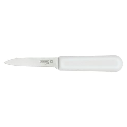 - Material: Aço inoxidável, Resina termoplástica. - Cor do cabo: Branco. - Tipo de Embalagem: Blister. - Marca: Mundial. - - Lâmina: 3 ¼". - Indicação de uso: Indicada para cortar e descascar frutas e legumes, ideal para cortes decorativos e pequenos pedaços. - Lâmina em aço inoxidável. -Fio com excepcional resistência e durabilidade. -Cabo desenvolvido para sua segurança e total conforto. -Resistente á máquina de lavar. Marca: Não Informado Ean: 7891060885279