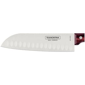 A faca santoku Tramontina com lâmina em aço inox e cabo em madeira tratada Polywood castanho 7 polegadas é a escolha ideal para levar maior versatilidade para sua cozinha, pois pode utilizá-la para cortar, picar e fatiar, tudo isso, com alta qualidade. Desenvolvida com lâmina em aço inox com trat...