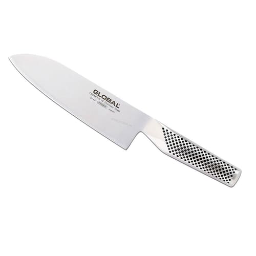 Faca Santoku Em Aço Inox 18cm Global Forjada e afiada manualmente, esta faca Santoku possui o que há de melhor em aço de alto desempenho. O formato da lâmina é desenhado especialmente para garantir o corte perfeito e total segurança durante o manuseio. Ainda conta com afiação incrivelmente superior comparada às facas de seus concorrentes e distribuição de peso impecável que proporciona firmeza e agilidade com menos repetições. Baseada em conceitos milenares de forjamento de lâminas e inspirada nas poderosas espadas dos samurais, a Japonesa Global Knives detém conhecimentos suficientes que a destaca como a melhor produtora de lâminas para fins culinários do mundo, atendendo os padrões mais exigentes e recebendo uma série de prêmios, como o da renomada revista americana Restaurant Magazine. Pela 6 vez consecutiva, vitoriosa na categoria de faca Choice Awards em 2015.Ficha técnica:- Código: 4082060001- Marca: Global- Modelo: Santoku- Conteúdo da Embalagem: 1 Faca- Material: Aço inox- Peso: 300g- Dimensões: 2,2cm x 8,8cm x 37,5cm (AxLxP)- Garantia: 3 Meses - Contra defeito de fabricação Sobre a Marca - Apesar de fundada apenas em 1985, a Global Knives se baseia no conhecimento japonês milenar de forjamento de lâminas. Há mais de mil anos o Japão já era conhecido por possuir ferreiros e forjas que produziam os metais cortantes mais fortes e afiados do planeta, fama esta que acompanhou a linhagem dos tradicionais guerreiros samurais. Quanto mais respeitado o samurai, melhor era sua espada. Até hoje a Global Knives detém conhecimentos que os colocam como os melhores produtores de lâminas para fins culinários no mundo. Garantia - 3 Meses - Contra defeito de fabricação Mais Informações - Medidas aproximadas do Gift Box: Altura: 2,2cm Largura: 8,8cm Comprimento: 37,5cm Peso: 300g Marca: GLOBAL ALUMÍNIOS