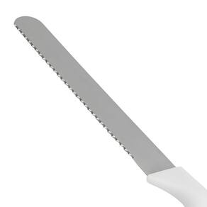 A Faca Serrilhada 8" para cortar Pão, Bolos e Tortas da Linha Essential é perfeita para quem busca cortes precisos e limpos sem amassar ou desfiar os alimentos. Sua lâmina serrilhada de alta qualidade permite fatiar pães, bolos, tortas e outros alimentos delicados com facilidade, mantendo a forma e a textura dos produtos. O cabo ergonômico garante segurança e conforto no manuseio, tornando o corte mais eficiente e seguro, tanto em cozinhas domésticas quanto profissionais. Essencial para padarias, confeitarias ou qualquer preparo caseiro, é um utensílio que alia durabilidade, desempenho e praticidade em um só produto!