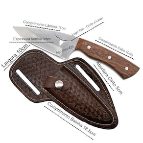 Faca Skinner Campeira Pantaneira Funcional Aço Inox 420 Cabo Madeira Com Bainha Couro Botao