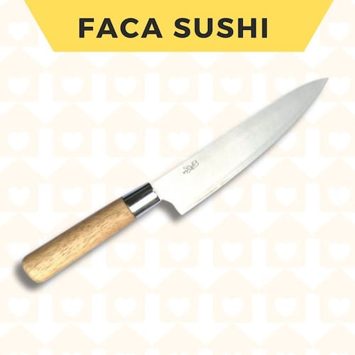 Faca Sushi Cabo Madeira Aço 33cm Profissional Anatomico 1Un