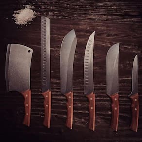 Com a faca butcher para carne tramontina churrasco black com lâmina em aço inox escurecido e cabo de madeira 10 polegadas ficou muito mais prático servir as melhores carnes no seu churrasco e com a garantia de um corte de alta qualidade. Produzida com lâmina de aço inox escurecido com excelente afiação, ela é ideal para cortes maiores. Sua lâmina conta com sulcos que minimiza o seu atrito com a carne. O cabo em madeira com rebites proporciona um manuseio muito mais firme e confortável, além de um estilo diferenciado. Escolha tramontina e veja a praticidade tomar conta do seu dia a diaIdeal para cortes grandes.Lâmina de aço inox escurecido. Resistente e robusta.Cabo de madeira com design anatômico que torna o uso muito mais confortável.Rebites aço inox escurecido.Antes da primeira utilização, lave bem a peça e seque-a.Produto cortante e perfurante: tenha cuidado ao manusear e mantenha fora do alcance das crianças.Não utilize materiais abrasivos para limpeza e para maior durabilidade do produto recomenda-se secar bem antes de guardar. Não utilize em máquinas de lavar.Para descarte do produto e embalagem siga as orientações de reciclagem vigentes.Altura: 2,2 cmLargura: 4,8 cmComprimento: 38,5 cmPeso: 190 grPara produto unitário, estas especificações são referentes ao produto.A faca é produzida com madeira de recursos responsáveis. Ao escolher este produto, você ajuda a cuidar das florestas do mundo.Garantia de 90 dias para vícios ou defeitos de fabricação.Tramontina o prazaer fe de fazer bonito