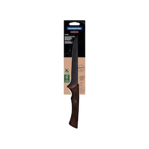 Para preparar e limpar a carne para o seu churrasco, a faca para desossar Tramontina Churrasco Black com lâmina em aço inox escurecido e cabo de madeira 6 polegadas é indispensável em seu jogo de facas. Ela é desenvolvida com materiais de alta qualidade e vai facilitar ainda mais separar a carne do osso ou tirar sua gordura, pois a lâmina de aço inox escurecido conta com alto poder de corte. Seu cabo é em madeira e possui rebites que proporcionam um manuseio muito mais firme e um toque rústico à peça. Garanta já a sua e deixe esse momento muito mais eficiente! Ideal para separar a carne dos ossos e tirar a gordura. Lâmina de aço inox escurecido. Resistente e robusta. Cabo de madeira com design anatômico que torna o uso muito mais confortável. Rebites aço inox escurecido.