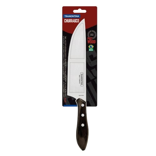 Faca Tramontina Para Carne 8" Em Aço Inox E Cabo Castanho Polywood Faca Tramontina para Carne 8 em Aço Inox e Cabo Castanho Polywood Com a Faca Tramontina para Carne 8 polegadas com Lâmina em Aço Inox e Cabo Castanho Polywood você poderá preparar e servir os melhores cortes de carne. A sua lâmina é produzida em aço inox, proporcionando durabilidade para o dia a dia. Possui cabo de madeira tratada Polywood, que oferece resistência à impactos e altas temperaturas. Seu design diferenciado e beleza única farão das suas confraternizações um momento ainda mais incrível. Uma faca da linha Churrasco pensada para ser admirada acima de tudo.
