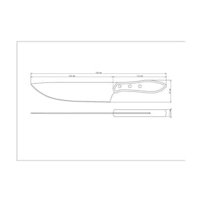 A lâmina de aço inox têm maior durabilidade do fio devido ao tratamento térmico. O cabo de madeira tratada Polywood é resistentes à impactos e alta temperaturas garantindo maior resistência e durabilidade. Rebite de alumínio. Pode ir à máquina de lavar louças facilitando seu dia a dia.