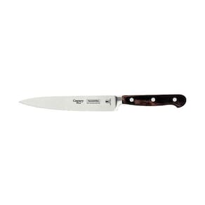 Com a Faca Utility Tramontina Century Wood, de lâmina em aço inox e cabo de madeira tratada castanho de 6 polegadas, você tem em mãos a combinação perfeita de beleza, durabilidade e desempenho na cozinha. Sua lâmina forjada em aço inox especial garante cortes precisos e duradouros, oferecendo alto poder de corte e excepcional durabilidade do fio. O cabo de madeira tratada, fixado com rebites de alumínio, acrescenta um toque de elegância à sua rotina culinária, além de proporcionar um manuseio confortável e . Esta faca versátil é também prática, podendo ser levada à máquina de lavar louças, facilitando seu dia a dia. Desenvolvida com precisão e cuidado, a Faca Utility Century Wood é uma verdadeira obra-prima culinária, ideal para profissionais e entusiastas da gastronomia. Seja cortando, fatiando ou picando, você experimentará uma performance incomparável com esta faca de alta qualidade!