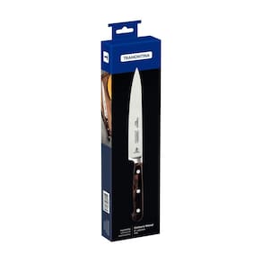 Com a faca utility Tramontina Century Wood com lâmina em aço inox e cabo de madeira tratada castanho 6 polegadas, você tem em mãos a combinação perfeita de beleza, durabilidade e desempenho na cozinha. Com lâmina forjada de aço inox especial, ela garante cortes precisos e por mais tempo, pois conta com alto poder de corte e durabilidade no fio. O cabo é em madeira tratada, tem fixação através de rebites de alumínio e proporciona um toque de elegância para sua rotina na cozinha, além de um manuseio confortável. Além de todas essas características, ela é versátil e pode ser levada à máquina de lavar louças, facilitando seu dia a dia. Desenvolvida com precisão e cuidado, a faca utility Century Wood é uma verdadeira obra-prima culinária para profissionais e entusiastas da gastronomia. Seja cortando, fatiando ou picando, você experimentará uma performance incomparável!