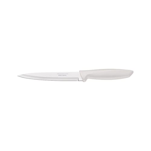 A Faca Utility Tramontina Plenus com Lâmina em Aço Inox e Cabo de Polipropileno Off White 6 Polegadas da Linha Plenus vai ser sua melhor amiga na cozinha. A lâmina com ponta em formato de espada auxilia você na perfuração e abertura de diferentes alimentos. E pode ser usada para cortar carnes, frutas e vegetais. Além disso, trazendo qualidade e resistência, a lâmina é produzida em aço inox e possui 6 polegadas. O cabo em polipropileno na cor off white também garante conforto e qualidade no dia a dia. Linha Tramontina Plenus: pensada para deixar seus momentos na cozinha incríveis! Orientações Com ponta em formato de espada, auxilia na abertura e na perfuração dos alimentos.A lâmina de aço inox têm maior durabilidade do fio devido ao tratamento térmico. O cabo de polipropileno possui maior resistência e durabilidade. Pode ir à máquina de lavar louças facilitando seu dia a dia. Observações Antes da primeira utilização, lave bem a peça e seque-a. Produto cortante e perfurante: tenha cuidado ao manusear e mantenha fora do alcance das crianças. Para maior durabilidade do produto recomenda-se secar bem antes de guardar, mesmo após lavagem em máquina. Recomenda-se o uso de tábuas de polipropileno ou madeira da Tramontina para maior durabilidade do fio da faca. Não é indicado o uso da faca para o corte de alimentos congelados. Mantenha sempre sua faca afiada utilizando os afiadores da Tramontina.Para descarte dos produtos e embalagens siga as orientações de reciclagem vigentes. Características Gerais EAN13 7891112226067 DUN14 17891112226064 NCM 8211.92.10 Peso Líquido 0,0650 kg. Peso Bruto 0,0800 kg. Metragem 0,000460 m³. Dimensões Embalagem (Compr. X Larg. X Alt.) 22x 61x 343 mm. Dimensões Produto (Compr. X Larg. X Alt.) 284x 34x 18 mm. Cor 1 D9D9D6 Hexa