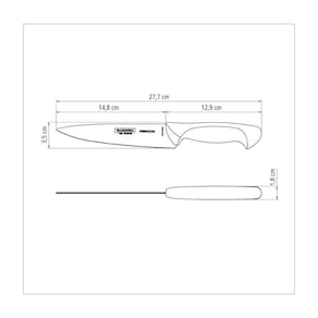 - Marca: Tramontina - Com ponta em formato de espada, auxilia na abertura e na perfuração dos alimentos. - A lâmina de aço inox têm maior durabilidade do fio devido ao tratamento térmico. - O cabo de polipropileno possui maior resistência e durabilidade. - Pode ir à máquina de lavar louças facilitando seu dia a dia. - Peso: 77,5 gr - Garantia: 90 dias para vícios ou defeitos de fabricação.