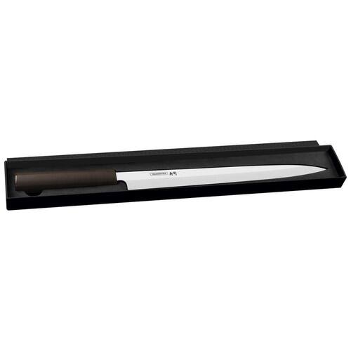 Faca Yanagiba Tramontina Sushi Com Lamina Em Aço Inox E Cabo De Nylon 13" Faca Yanagiba Tramontina Sushi Silver com Lâmina em Aço Inox e Cabo de Nylon 13 Você que é amante da cozinha oriental precisa conhecer a Faca Yanagiba Tramontina Sushi Silver com Lâmina em Aço Inox e Cabo de Nylon 13 polegadas, da linha Sushi. Você terá muito mais precisão com a lâmina em aço inox de alta performance e o cabo de nylon com proteção antimicrobiana. Com 13 polegadas, ela garante segurança e equilíbrio na hora de realizar o corte perfeito para um prato japonês de primeira qualidade. Com a Tramontina você surpreende!