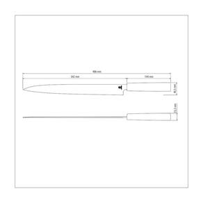 Modelo clássico da cozinha oriental, com lâmina alongada que garante cortes de precisão. Indispensável no preparo de sushi e sashimi. A lâmina de aço inox de alta performance possui um fio especial para cortes precisos. O cabo de nylon possui proteção antimicrobiana que inibe e reduz o crescimento de bactérias e fungos. Esta tecnologia é incorporada durante o processo de injeção e dura por toda vida útil do produto, mas não elimina a necessidade de lavá-lo.