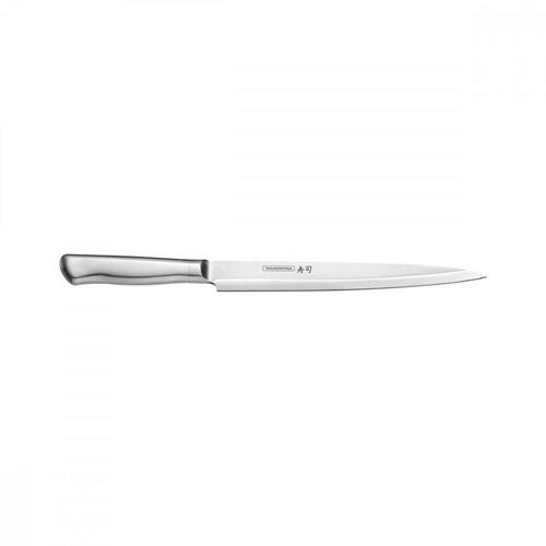 Faca Yanagiba Tramontina Sushi Diamond Com Lamina E Cabo Em Aço Inox 9 Faca Yanagiba Tramontina Sushi Diamond com Lâmina e Cabo em Aço Inox 9 Para quem deseja se aventurar na cozinha oriental, a Faca Yanagiba Tramontina Sushi Diamond com Lâmina e Cabo em Aço Inox 9 Polegadas é a escolha perfeita. Sendo um modelo clássico ideal para o preparo de sushi e sashimi. Possui lâmina alongada em aço inox de alta performance com fio especial, permitindo cortes precisos. Além disso, as ranhuras do cabo garantem total firmeza e durante o manuseio. Produzida totalmente em aço inox é uma peça de alta durabilidade e muito fácil de limpar.