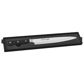 - Yanagiba: é o modelo clássico da cozinha japonesa, com lâmina alongada que garante cortes de precisão milimétrica. Indispensável no preparo de sushis e sashimis.- a Lâmina de aço inox de alta performance Possui um fio especial para cortes precisos.- Cabo de Policarbonato reforçado com fibra de vidro garante alta durabilidade injetado sobre a espiga da lâmina, anatômico e com ergonomia perfeita proporcionando conforto, equilíbrio e na hora de cortar.- rebites de alumínio que auxiliam Na fixação do cabo.- evitar impactos que possam danificar o fio.- Recomenda-Se lavar manualmente.- Certificado pela National Sanitation Foundation (NSF), organização reconhecida como a autoridade internacional em alimentar e práticas de higiene.