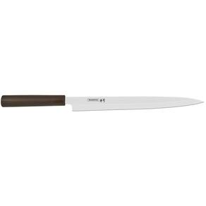 CARACTERÍSTICAS DA FACA YANAGIBA TRAMONTINA SUSHI LÂMINA EM AÇO INOX E CABO DE NYLON - Modelo clássico da cozinha oriental, com lâmina alongada que garante cortes de precisão; - Indispensável no preparo de sushi e sashimi; - A lâmina de aço inox de alta performance possui um fio especial para cortes precisos; - O cabo de nylon possui proteção antimicrobiana que inibe e reduz o crescimento de bactérias e fungos. Esta tecnologia é incorporada durante o processo de injeção e dura por toda vida útil do produto, mas não elimina a necessidade de lavá-lo; - COMPRIMENTO DA LÁMINA 32 CM.