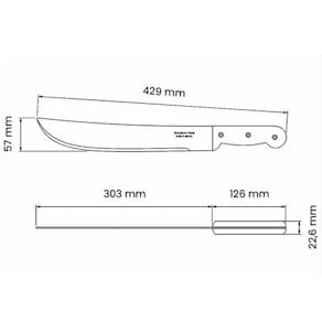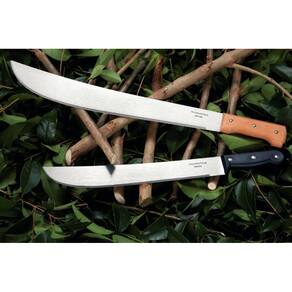Lâmina de aço carbono com tratamento térmico especial que proporciona maior dureza, resistência do fio e maior poder de corte.