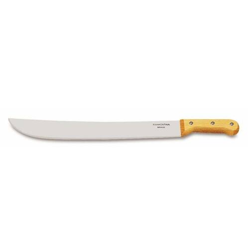 Facão para Mato 12" Tramontina 26620012 Facão para mato. Como usar o produto Uso seguro e adequado: Tenha cuidado ao manusear produtos cortantes e perfurantes e mantenha-os fora do alcance de crianças. Para garantir a durabilidade dos produtos, recomenda-se secá-los bem após a lavagem. Descrição técnica: 1. Lâmina com maior durabilidade do fio devido ao tratamento térmico. 2. A lâmina recebe um acabamento lixado com um revestimento em verniz, que lhe confere uma maior resistência. 3. Cabo de polipropileno com mais resistência e durabilidade. Especificação técnica: Lâmina em aço carbono 12 com fio liso. Cabo de madeira fixado por pregos de alumínio. EAN13: 7891112011625 DUN14: 17891112011622 NCM: 8201.40.00 Peso Líquido: 0,2950 kg. Peso Bruto: 0,2950 kg. Metragem: 0,000578 m³. Dimensões Produto Compr. X Larg. X Alt. : 430x 48x 24 mm. Espessura: 2,0 mm. Cor 1: C67732 Hexa