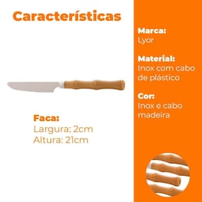 Jogo de Facas de Mesa em Inox com Cabo de Plástico Bambu - Lyor