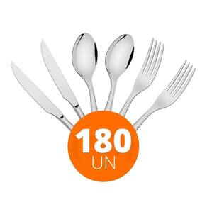 COMPONENTES DO KIT: 60 Faca para Churrasco Laguna em Aço Inox - Tramontina 63906180 60 Garfo de Mesa Laguna em Aço Inox - Tramontina 63906020 60 Colher de Sopa Laguna em Aço Inox - Tramontina 63906010