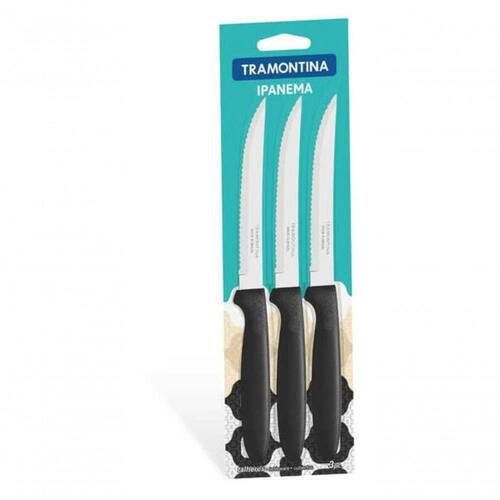 Altamente resistentes e duráveis, ;o Conjunto de Facas para Churrasco Tramontina Ipanema com Lâminas em Aço Inox e Cabos de Polipropileno Preto 3 Peças é o conjunto perfeito para ter em sua cozinha. Os talheres do conjunto são produzidos com lâminas em aço inox e cabos de polipropileno na cor preto. Além de serem fáceis de limpar, podem ir à máquina de lavar louças diariamente e possuem um excelente fio de corte. Leve mais cor e estilo para suas refeições e para o seu dia a dia!