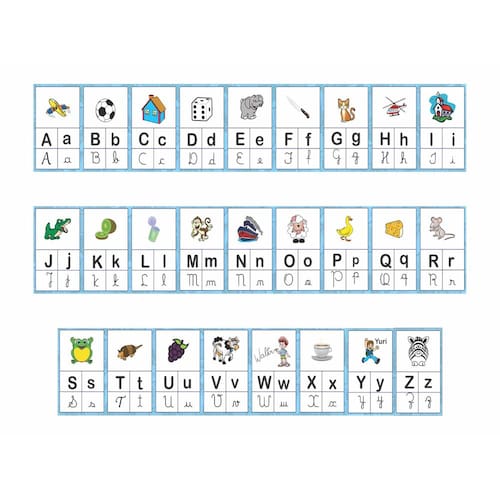 - A faixa do alfabeto é bem colorido e além de ajudar no ensino, ajuda a decorar de uma maneira muito divertida. Em 10 minutos já fica tudo pronto pois é muito fácil de aplicar.