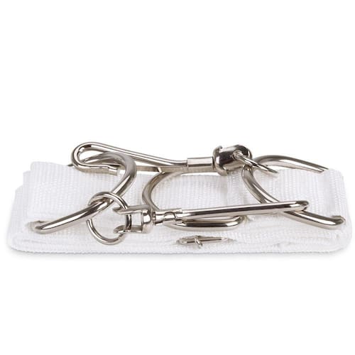 - Detalhamento: Faixa branca para rede de Tênis. Mede 0,05 larg. X 1,50 comp. Acompanha argolas e mosquetão para fixação;