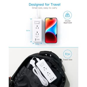 -?Tamanho compacto para viagens?Este fino filtro elétrico é o companheiro de viagem perfeito, projetado especificamente para atender aos regulamentos das companhias de cruzeiros, pois não possui proteção contra sobretensão. É compacto, leve e fácil de transportar, o que o torna ideal para viagens e uso em navios de cruzeiro. Não precisa se preocupar com adaptadores volumosos ou tomadas limitadas em suas viagens — esse filtro de linha ideal para viagens garante que você permaneça conectado onde quer que vá
