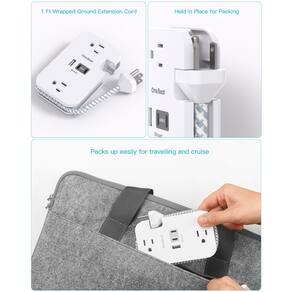 ?Compacto para viagens e cabo de extensão embrulhado de 1 pé?Com apenas 5,36 onças, tamanho mini de 4,72* 2,5* 1,8 polegadas. Cabo de alimentação retrátil de 1 pé com bolsa de armazenamento, design compacto e leve, cabe facilmente na bagagem e na bolsa. As 3 portas USB adicionais também ajudam a eliminar seus adaptadores volumosos. Ideal para levar durante viagens de negócios, férias e férias para manter todos os seus dispositivos essenciais de viagem carregados. Também é o melhor presente para sua família.