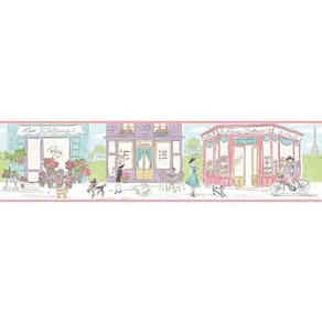 Faixa De Parede Waverly Kids Ooh La La Wk6821bd Faixa de Parede Waverly Kids Ooh La La WK6821BD destacando lugares do cotidiano francês, as calçadas com os cafés e bakerys, destacando um charmoso estilo de vida. Use as faixas de parede como rodabase, rodameio ou rodateto, sobre papel de parede desta mesma coleção. Você irá transformar o quarto em um ambiente charmoso, agradável, delicado e todos irão pensar que foi um trabalho de decorador de interiores. Um produto da Americana York Wallcoverings.