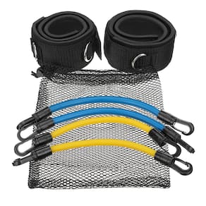Faixa De Resistência Para Pernas Treinamento Força Descrição: Melhore os músculos da perna, quadril e núcleo para melhorar a velocidade de corrida, salto vertical, mobilidade e resistência. A faixa de resistência é um produto fácil de transportar: você pode trabalhar em casa, na academia, ao ar livre e usá-los enquanto pratica. Perfeita também para praticar esportes. Obs: São 4 elasticos 15 cm cada Com Presilhas de Ferro. Itens inclusos: - 2 bandas amarelas 15lbs; - 2 bandas azuis 25 libras; - 2 correias; - 1 armazenamento Bols