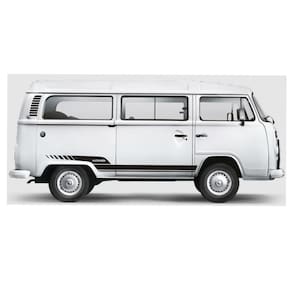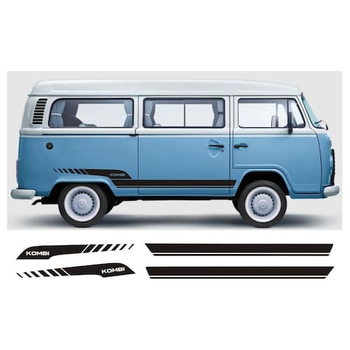 Faixa Lateral Para Kombi Vw Perua Adesivo Kb3 E Kb4 Preto Kit adesivo lateral em vinil automotivo com Os dois 2 lados e quatro 4 peças modelo KB3 KB4 Para VW Kombi todos os anos Cor única do adesivo: Preta e escrita vazada ficando na cor do carro Marca: Srt Wolf 1