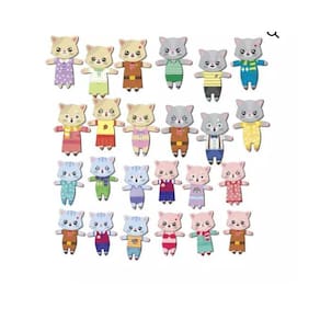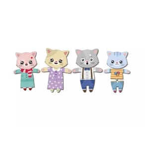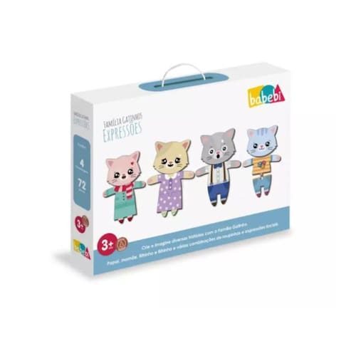 Características: - crie e imagine diversas histórias com a família gatinho. Papai, mamãe, filhinho e filhinha. - várias combinações de roupas e expressões faciais. - cada personagem conta com diversas expressões faciais e conjuntos de roupinhas. - que podem ser trocadas a cada história. Mas fique atento pois cada personagem tem sua combinação o que estimula a criança a pensar antes de montar. - feito de madeira reflorestada. - contém 04 personagens com 72 peças, sendo 6 expressões e 6 conjuntos de roupinhas para cada. - indicado para crianças a partir de 3 anos. - recomenda-se o auxílio de um adulto. Utilizamos materiais seguros, duráveis e ecológicos.